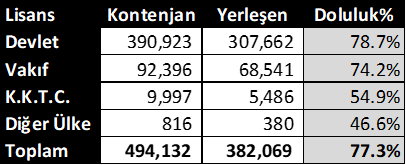 • KKTC toplam kontenjanı 2015’ten bu yana 14.000’den 10.000’e indirildiği, diğer ülke kontenjanı da 2.000’den 800’e indirildiği halde, doluluk oranları hep %50 civarında gerçekleşmiş.